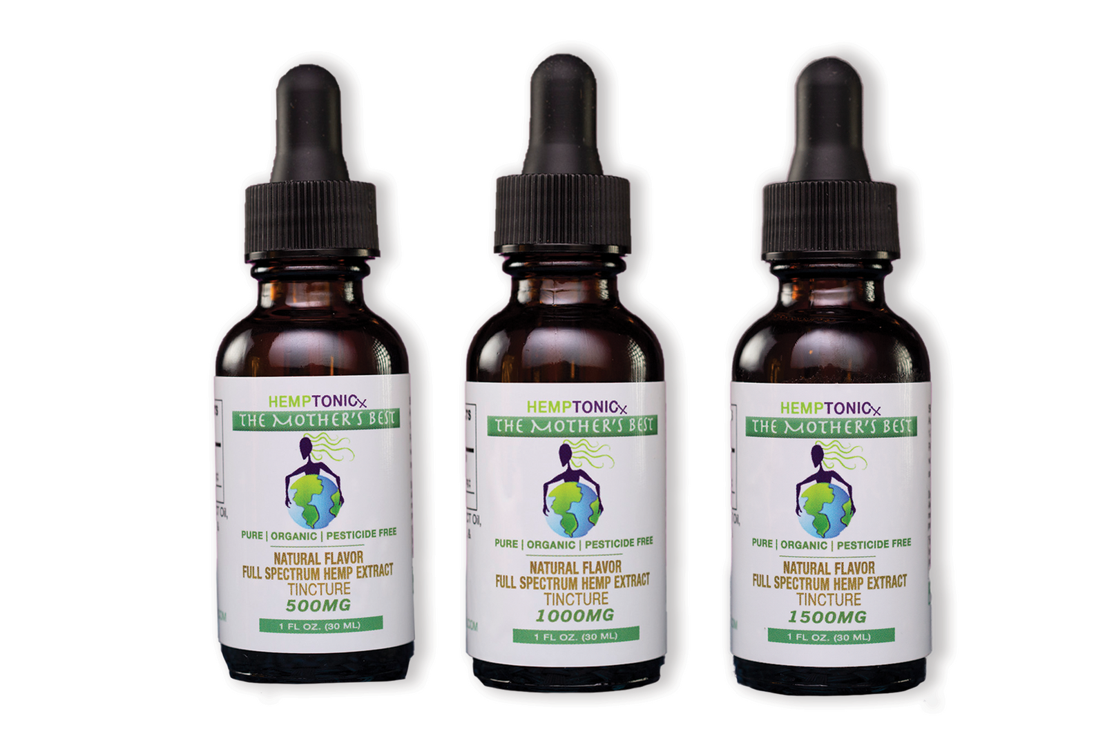 15% OFF 3 Pack Natural Flavor Tinctures. 1 bottle each of varing strengths of 500mg, 1000mg & 1500mg.