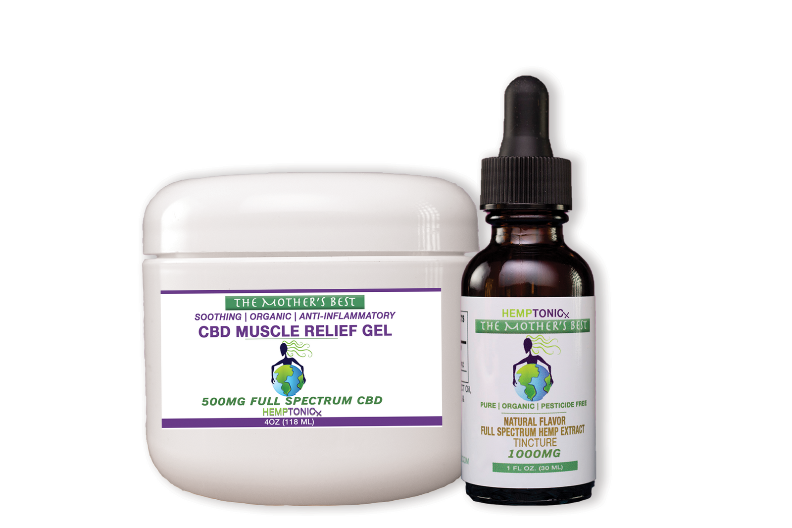 Combo package includes Full Spectrum Hemp CBD 500mg Muscle Gel & Full Spectrum Hemp CBD 1500mg Tincture.